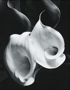 This curated gallery began with her photograph, Two Callas, made around 1925. The other works display characteristics of her modernist style. The images are sharp with subtle gradations of black, white, and grey tones; and share an emphasis on light, form, and pattern.