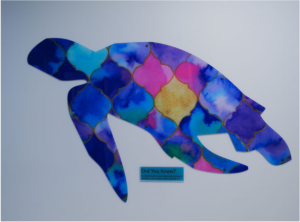 Large acrylic turtles and dolphins were created with the idea of physical therapy in mind, promoting movement by providing a goal for patients to reach during walks in the hallways. Each piece is also accompanied by facts about that animal for a more intellectually enriching experience.
