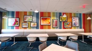 Abstract photography is used in both transitional and communal spaces, such as hallways and lounges. Vibrant, saturated colors coupled with perspectives that transform the familiar into something new, reflect an eagerness to explore new horizons and new ideas. Throughout every facility are rewards for all those still hungry for adventure.